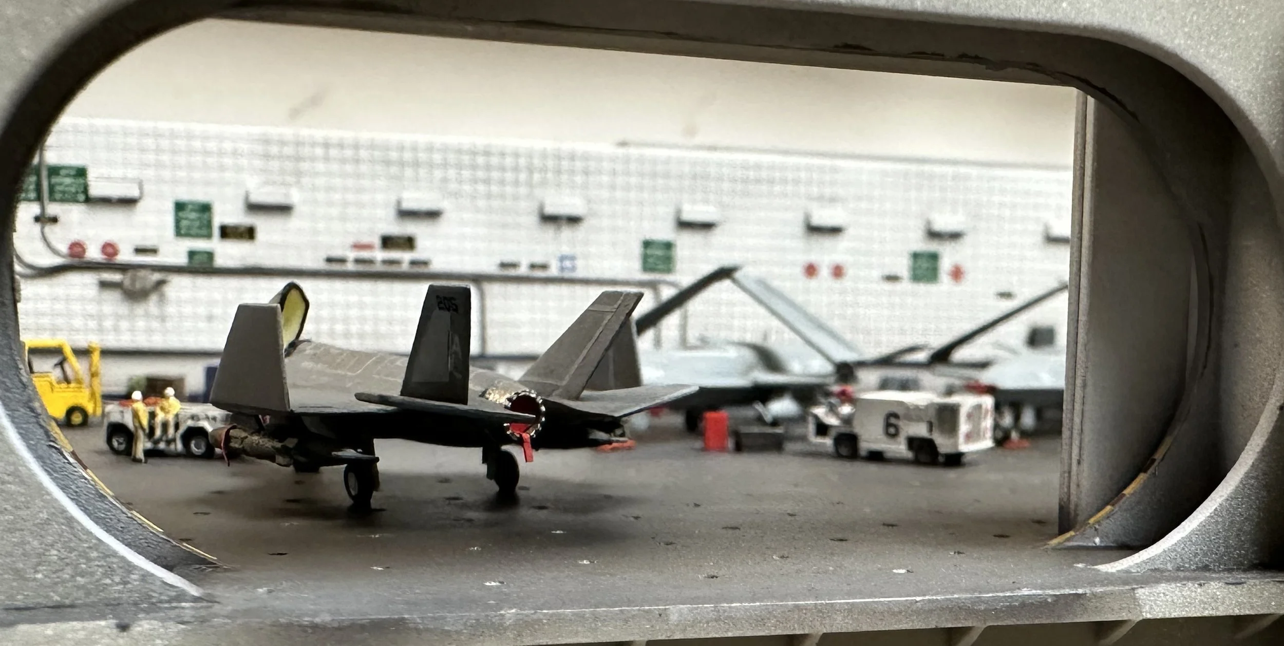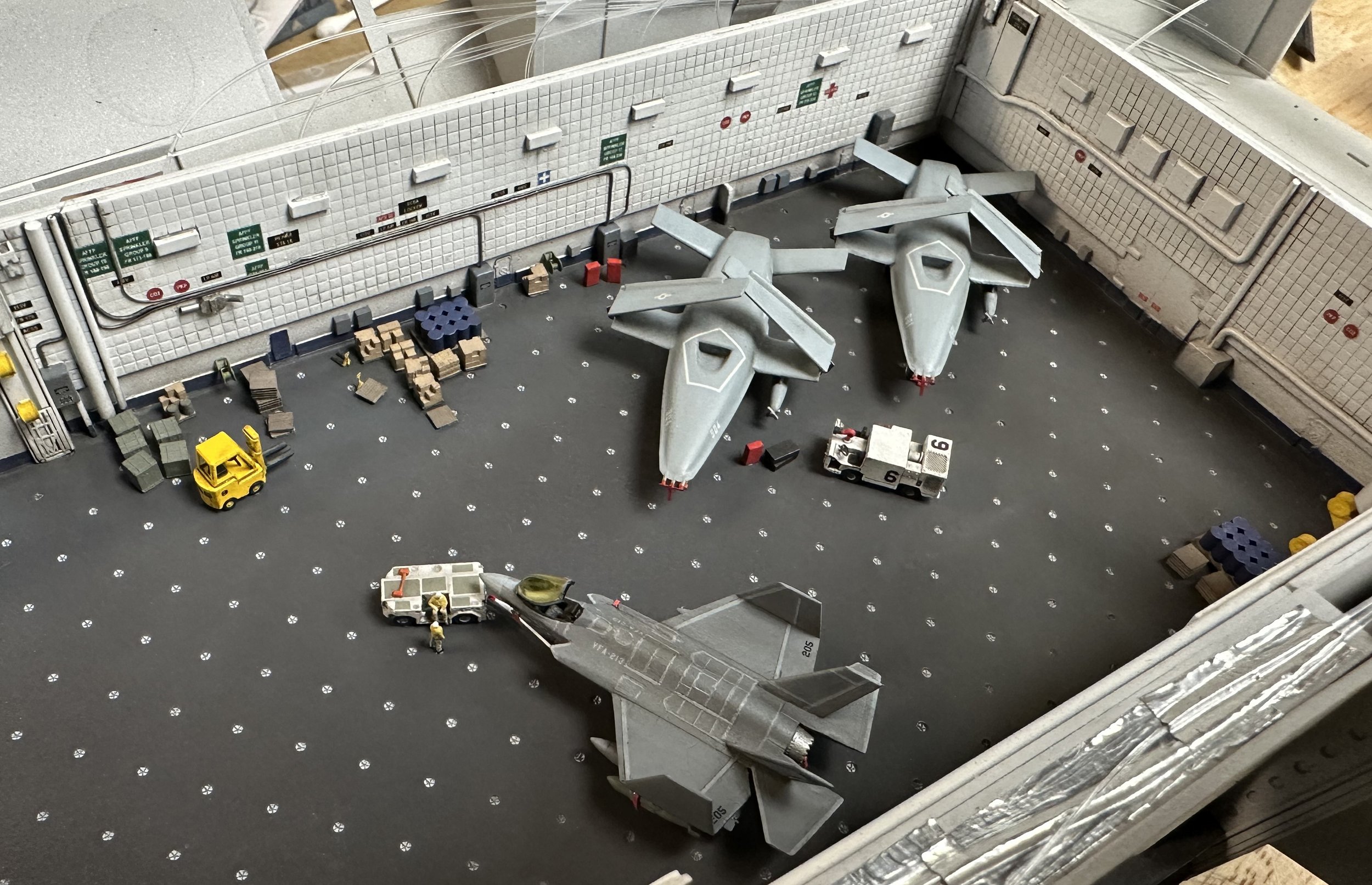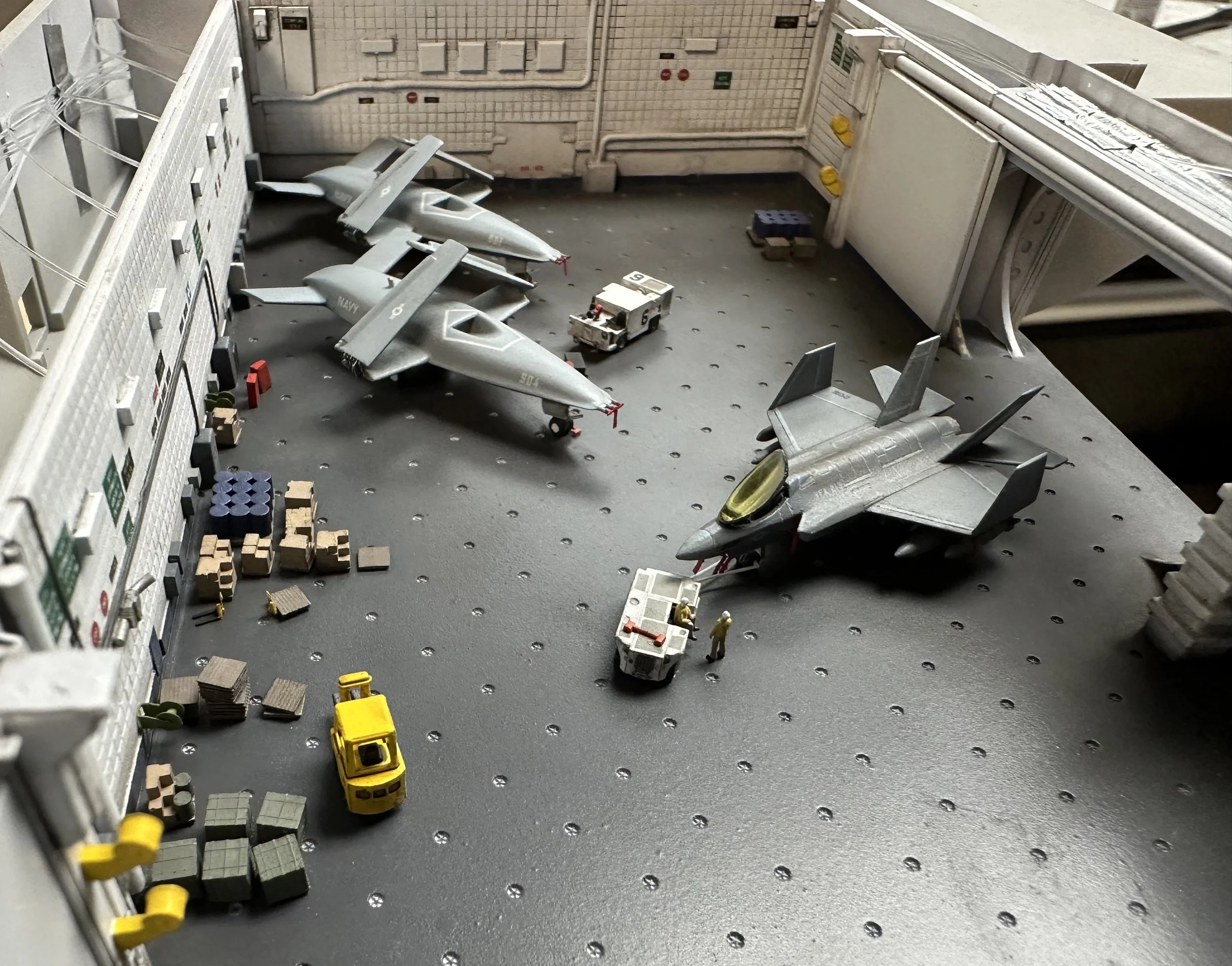 Next on the list are two F-35Cs, maybe three F-18s, and an MV-22 Osprey, as well as ongoing addition of cargo, vehicles, and, eventually, people.